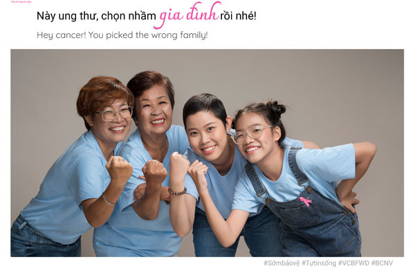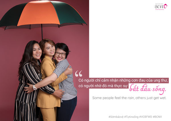 Các bệnh nhân đã cùng nhau thực hiện bộ ảnh này như một lời cảm ơn cuộc đời và những người thân đã luôn ở bên cạnh, động viên và tiếp sức để họ vượt qua khó khăn. Thông điệp của bộ ảnh “Thank you for being my umbrella” cũng được thể hiện qua câu chuyện truyền cảm hứng của các nhân vật tham gia: gia đình chị Lương Ngọc Vân Anh (44 tuổi, bệnh nhân ung thư vú) cùng mẹ Phạm Thị Lệ Khanh (77 tuổi, bệnh nhân ung thư đại tràng), cháu gái Tạ Ngọc Phương Anh (28 tuổi, bệnh nhân ung thư vú) và con gái Lê Liễu Khôi (11 tuổi) – gia đình có 3 thế hệ đối diện với ung thư...