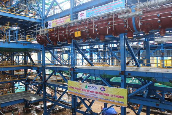 Trong khoảng thời gian hơn 5 tiếng, bao hơi số 1B nặng 161 tấn, dài hơn 23m, đường kính 1,8m, đã được kéo lên, lắp đặt vào vị trí an toàn trên độ cao 46m. Dự kiến tổ máy 1 sẽ phát điện cuối năm 2014