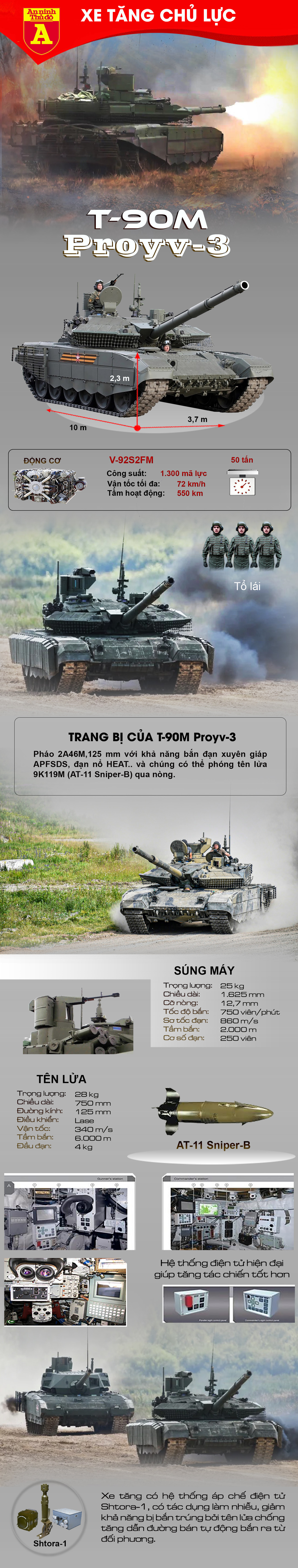 T-90M, còn được gọi là Proryv-3, là phiên bản nâng cấp mới nhất của dòng T-90, được Nga giới thiệu từ năm 2020. Xe tăng trang bị pháo nòng trơn 125 mm 2A46M-5, có khả năng bắn nhiều loại đạn xuyên giáp hiện đại, thậm chí cả tên lửa chống tăng điều khiển qua nòng. Ngoài ra, T-90M còn có giáp phản ứng nổ Relikt, hệ thống phòng vệ Shtora-1 và động cơ V-92S2F nâng cấp.