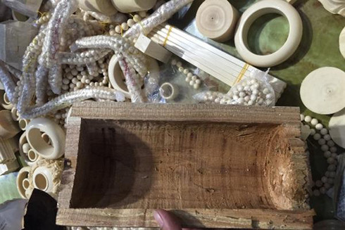 Những khúc gỗ bên trong cất giấu đồ mỹ nghệ nghi làm bằng ngà voi