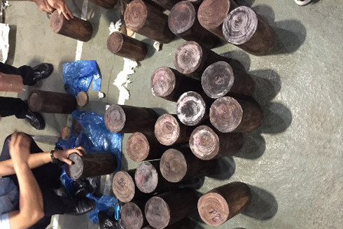 Tuy nhiên, trước những dấu hiện bất thường của khúc gỗ, tổ công tác đã sử dụng dao bổ đôi các khúc gỗ và phát hiện bên trong khúc gỗ rỗng ruột chứa nhiều vòng tay, nhẫn, tràng hạt, tượng nhỏ, hạt hồ lô đeo tay, đũa ăn, ấm trạm rồng... được bọc kín trong giấy nghi được làm từ ngà voi và sừng động vật. Tổng số hàng trên có trọng lương 43 kg. Hiện vụ việc đang được cơ quan công an tiếp tục điều tra, làm rõ.