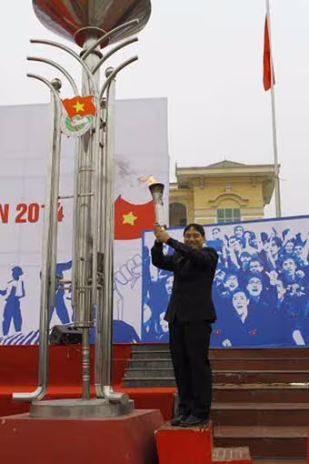 Đồng chí Nguyễn Đắc Vinh, Ủy viện dự khuyết Ban chấp hành TW Đảng, Bí thư thứ nhất BCH TW Đoàn đã châm đuốc thắp đài lửa khởi động Năm Thanh niên tình nguyện 2014