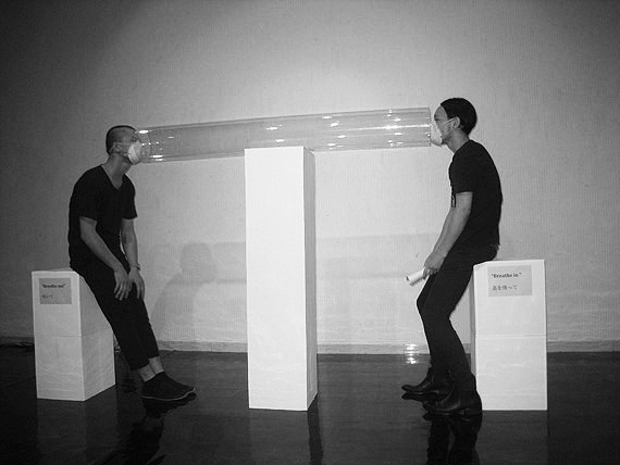 Tác phẩm sắp đặt và trình diễn "Thở vào" của Tuấn Mami, Nguyễn Phương Linh, Nguyễn Hồng Ngọc