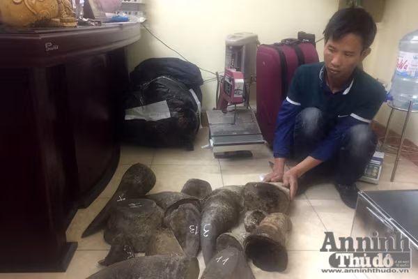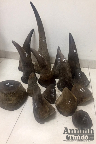 Số lượng sừng tê giác thu giữ tại ga Hà Nội trước đó