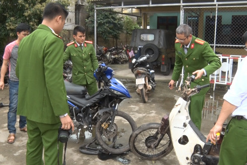 Lực lượng Công an khám nghiệm phương tiện gây TNGT xảy ra vào tối 25-2