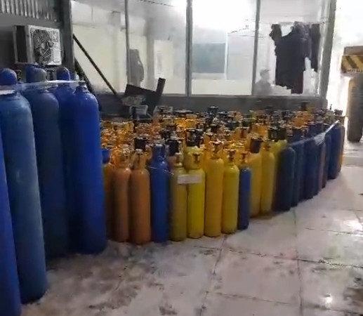Số bình kim loại chứa 'khí cười' tại kho của Công ty Hoa Việt