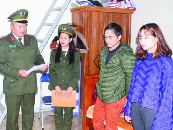 Cơ quan Công an đọc lệnh bắt giữ hai vợ chồng lừa đảo chiếm đoạt tài sản