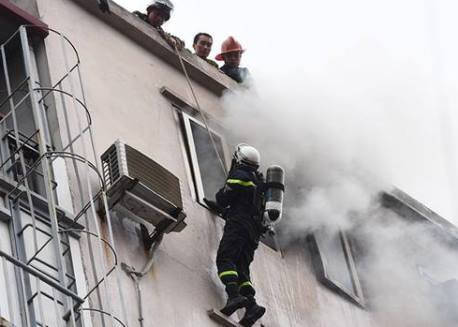 Lực lượng PCCC đu dây để xử lý sự cố trên cao