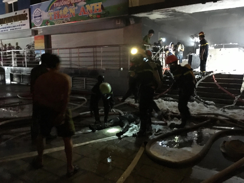 Cảnh sát PCCC nỗ lực chữa cháy tại chung cư Carina rạng sáng 23-3