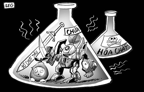 - Có thể cô Cua không biết, hoặc biết nhưng vì lợi nhuận nên lờ tịt đi. Hiện nay cơ quan y tế đã cảnh bảo các mặt hàng đồ chơi trẻ em Trung Quốc tràn ngập thị trường ở ta có chứa hóa chất độc hại, tổn thương sức khỏe, thậm chí gây ung thư cho trẻ em đấy.