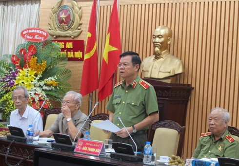 Thiếu tướng, Phó Giám đốc CATP Đào Thanh Hải phát biểu tại buổi gặp mặt các cán bộ CATP Hà Nội thời kỳ kháng chiến chống Pháp.