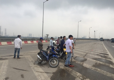 Một số lái "xe ôm" tụ tập đón khách trên đường vành đai 3 trên cao đã bị CSGT xử lý nghiêm