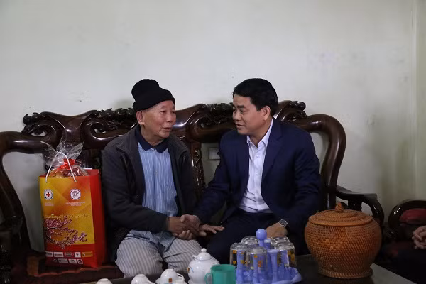 Chủ tịch UBND TP Nguyễn Đức Chung tặng quà Tết ông Bùi Văn Phong 83 tuổi, tại xã Đông Xuân, huyện Quốc Oai
