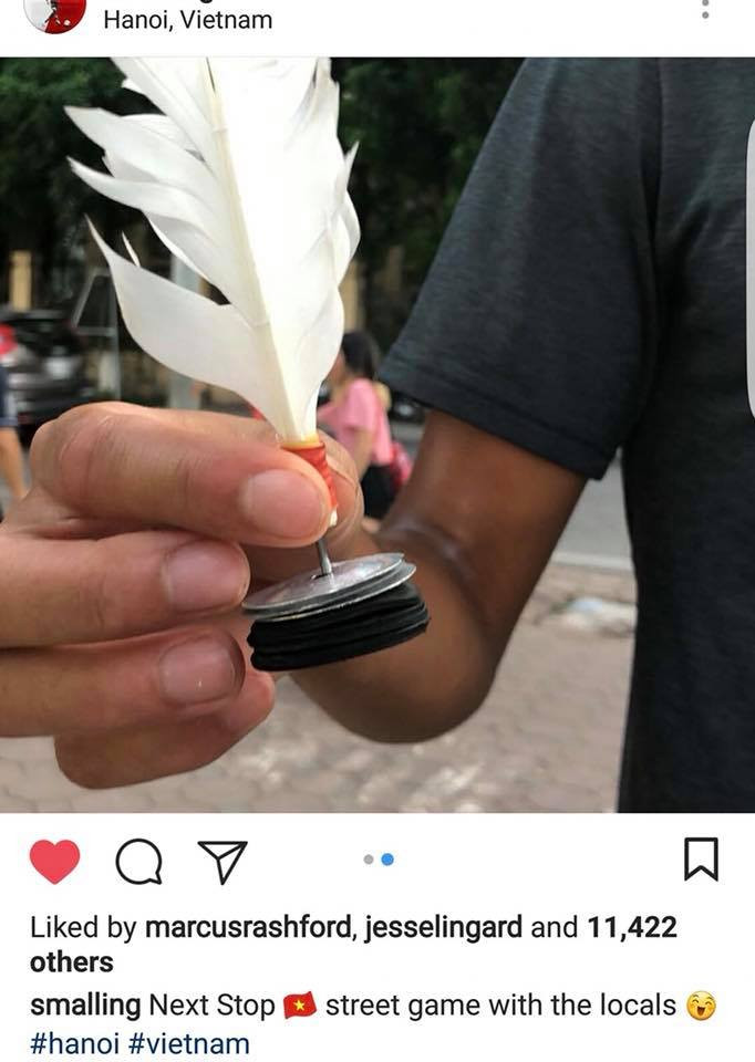 Smalling khoe quả cầu trên trang cá nhân và được hai đồng đội là Ligard và Rashford bấm "thích"