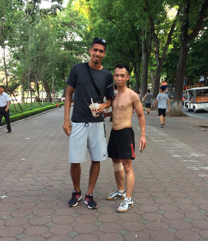 Theo một số hình ảnh được CĐV M.U tại Việt Nam chia sẻ, Smalling rất thư thái đi bộ một mình bên hồ Hoàn Kiếm. Trung vệ này hóa thân thành một khách du lịch đúng nghĩa khi ăn vận thoải mái, bụi bặm và không có bất cứ vệ sĩ nào đi kèm.
