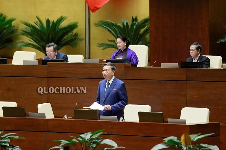 Bộ trưởng Bộ Công an Tô Lâm phát biểu trước Quốc hội
