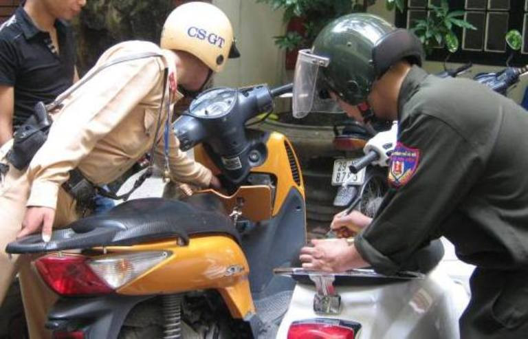 Cảnh sát cơ động và Cảnh sát Giao thông CATP Hà Nội kiểm tra phương tiện vi phạm