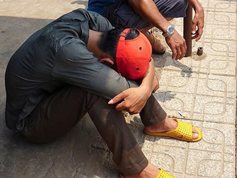 Khi biết tin con trai bị đánh tử vong, anh Thành, cha ruột cháu bé đau đớn, không nói lên lời.