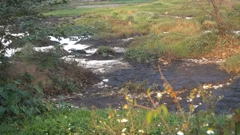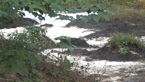 Dòng nước đen sì đặc quánh, bốc mùi nồng nặc