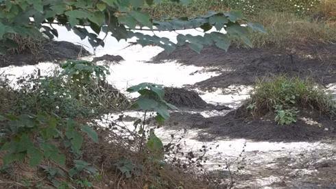 Có mặt tại khu vực trên vào sáng 19-12, chúng tôi thấy, rìa ngoài khu đất là những bụi cây rậm, cỏ cao ngang người. Song càng đi sâu vào bên trong, nhiều vạt cỏ đã bị chết khô, mùi hóa chất càng nồng nặc. Tại những điểm trũng, nước đọng đục ngầu, nổi váng xanh trắng và có bóng dầu. Ở rìa các ao nước này, đất chuyển màu đen và bốc mùi hắc, gây chóng mặt, buồn nôn.
