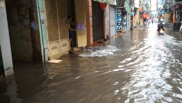 Nước bẩn và rác thải sau cơn mưa dai dẳng