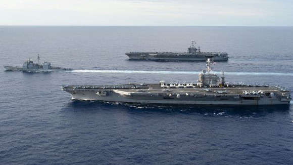 Trong một diễn biến khác, tờ Time ngày 30-9 cho biết, hai tàu sân bay Mỹ USS John C. Stennis và USS George Washington đã có mặt ở Biển Đông và Biển Hoa Đông. Các quan chức hải quân Mỹ xác nhận đội hình tấn công của tàu USS George Washington triển khai hoạt động trên biển Hoa Đông gần quần đảo tranh chấp Senkaku/Điếu Ngư. Trong khi đó, đội hình tấn công của tàu USS John C. Stennis hoạt động trong khu vực Biển Đông. Mỗi tàu sân bay trang bị hơn 80 máy bay chiến đấu, các đội chiến đấu gồm các tàu khu trục, tàu ngầm, tàu tiếp tế, tàu tuần tiễu trang bị tên lửa định hướng. Theo Time, việc triển khai các đội hình tấn công tàu sân bay này của Mỹ có thể nhằm cảnh báo Trung Quốc không leo thang xung đột ở quần đảo Senkaku/Điếu Ngư, tuy nhiên, cũng có thể là sự trùng hợp ngẫu nhiên.