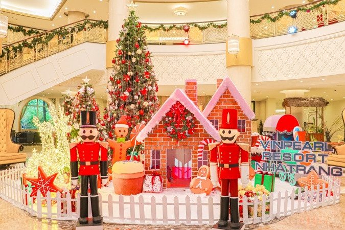 Tất cả đại sảnh của hệ thống khu nghỉ dưỡng Vinpearl Nha Trang được trang hoàng rực rỡ với các điểm nhấn mang phong cách Địa Trung Hải như: ngôi nhà bánh gừng, cỗ xe của Santa, hộp quà giáng sinh, bữa tiệc Xmas sôi động và Giáng sinh nhiệt đới… Phòng khách sạn với phong cách sang trọng cùng tầm nhìn toàn cảnh vịnh Nha Trang khoáng đạt hay villa riêng tư nằm giữa khuôn viên xanh mướt nối liền với biển xanh, cát trắng, nắng vàng, tất cả đều sẽ mang đến những trải nghiệm nghỉ dưỡng trọn vẹn và đẳng cấp.