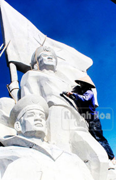 Bán đảo Cam Ranh mùa này nắng như đổ lửa. Giữa đại công trường khu tưởng niệm chiến sĩ Gạc Ma, không khí lao động vẫn gấp gáp, hối hả. Mặc cho hơi nóng từ đồi cát phà lên hầm hập, những nghệ nhân tạc tượng cứ miệt mài lao động. Tiếng máy cắt xả vào những khối đá vang lên khô khốc, những nhịp đục vẫn canh cách rộn rã. Tất cả thanh âm hòa vào nhau tạo nên một khí thế hăng say. Vừa làm, nghệ nhân Vũ Văn Toản vừa trò chuyện: “Bây giờ mọi thứ còn thô kệch, nhưng chỉ một tuần nữa thôi, sau khi mọi công đoạn hoàn tất, từ những khối đá nguyên thô ngày nào, những chân dung chiến sĩ Gạc Ma sẽ được khắc họa rõ nét”.