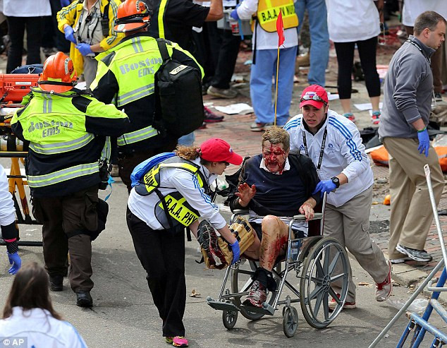 Vạch về đích nằm tại quảng trường Copley. Hơn 2 giờ sau khi các vận động viên đầu tiên cán đích, 2 tiếng nổ lớn vang lên và biến mọi thứ thành một đống hỗn độn. Các nhân chứng, hai quả bom làm rung chuyển các tòa nhà, khiến nhiều người phải chui xuống gầm bàn trú ẩn. Cảnh sát Boston cho biết thêm, vụ thứ ba xảy ra tại Thư viện JFK trong thành phố và đang được điều tra.