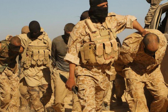 Cơ quan truyền thông chính thức của IS đã công bố hình ảnh các phiến quân đưa những binh sĩ tới một vùng sa mạc bí mật trước khi hành quyết họ.