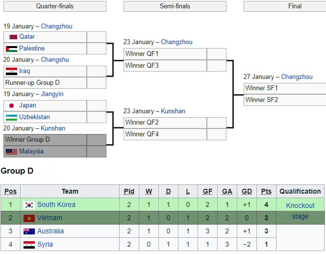 Về lý thuyết, cả 4 đội bảng D gồm U23 Hàn Quốc (4 điểm), U23 Việt Nam (3 điểm), U23 Australia (3 điểm) và U23 Syria (1 điểm) đều có cơ hội đi tiếp.