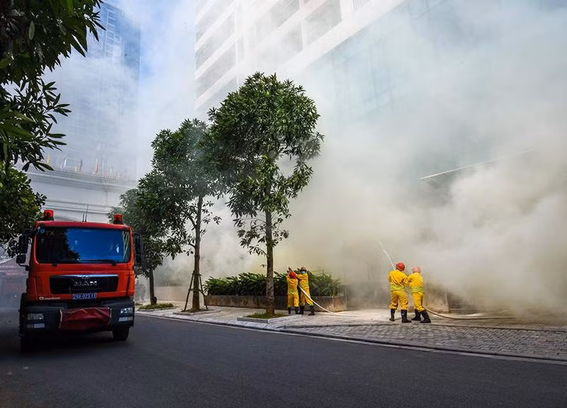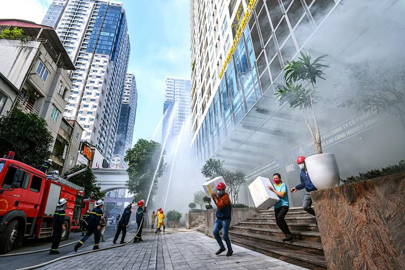 Kiểm tra khả năng phối hợp cứu nạn, chữa cháy tại tòa nhà cao tầng