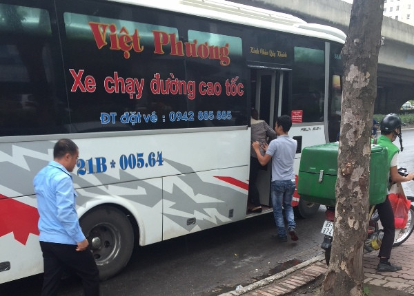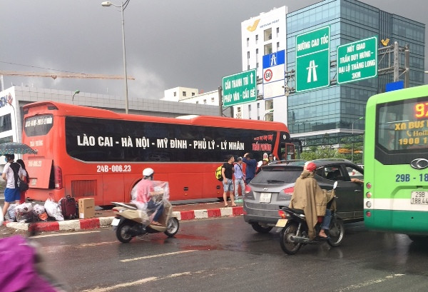Dọc đường Phạm Hùng, cách bến xe Mỹ Đình chỉ vài trăm mét, các nhà xe thi nhau dừng, đỗ đón trả khách