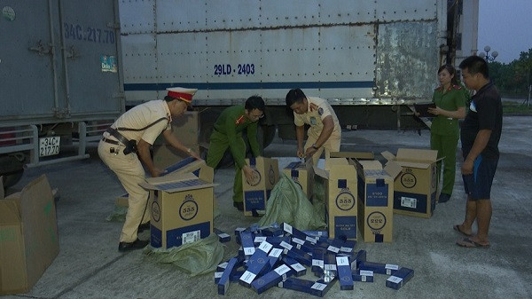 Ngay sau đó, tổ công tác tiến hành kiểm tra hành chính và phát hiện trên xe ô tô có 17.500 bao thuốc lá nhãn hiệu 555, trị giá trên 500 triệu đồng và 50 hộp bánh đã hết hạn sử dụng.