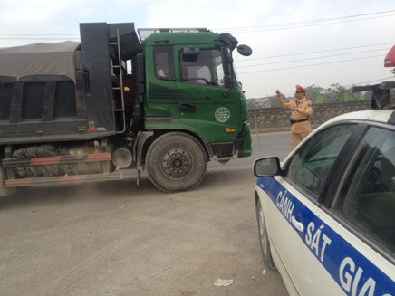 Trong chiều 20-12, trực tiếp Trung tá Bùi Văn Tiến, Đội trưởng Đội CSGT số 10 chỉ huy tổ công tác của đơn vị lập chốt trên quốc lộ 21B khu vực đi qua địa bàn huyện Mỹ Đức. Tại đây, tổ công tác đã phát hiện hàng loạt xe tải chở vật liệu xây dựng chạy với tốc độ cao, có nguy cơ gây TNGT cho người tham gia giao thông. Nhiều lái xe bấm còi ầm ỹ trên đường.