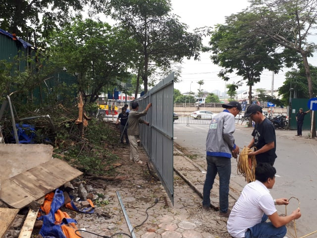 UBND phường Dịch Vọng Hậu tổ chức dựng hàng rào tôn, giữ gìn trật tự đô thị