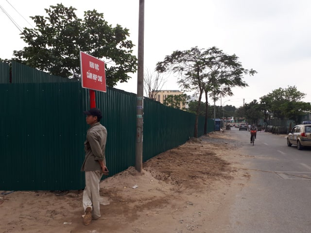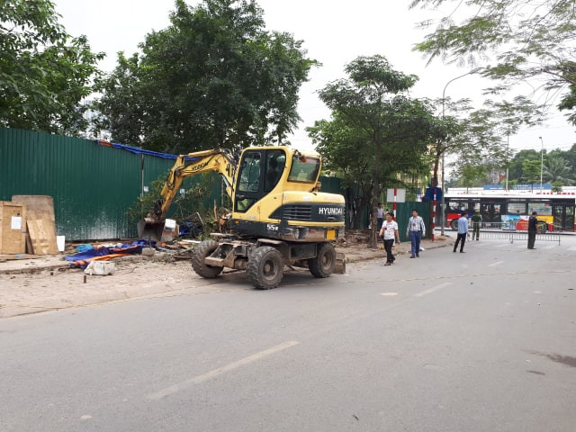 Lực lượng chức năng phường Dịch Vọng Hậu đưa phương tiện xử lý vi phạm ra lập rào tôn bảo vệ phần đất chưa sử dụng để giữ gìn trật tự đô thị