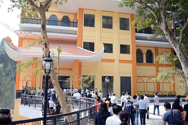 Trong đó, ga Chùa Hang (ga đến của tuyến cáp dẫn lên quần thể chùa Bà) sở hữu thiết kế độc bản, không “đụng hàng” với bất kỳ nhà ga cáp treo nào trên thế giới khi mang dáng dấp của một ngôi chùa 5 tầng uy nghiêm và trầm mặc.