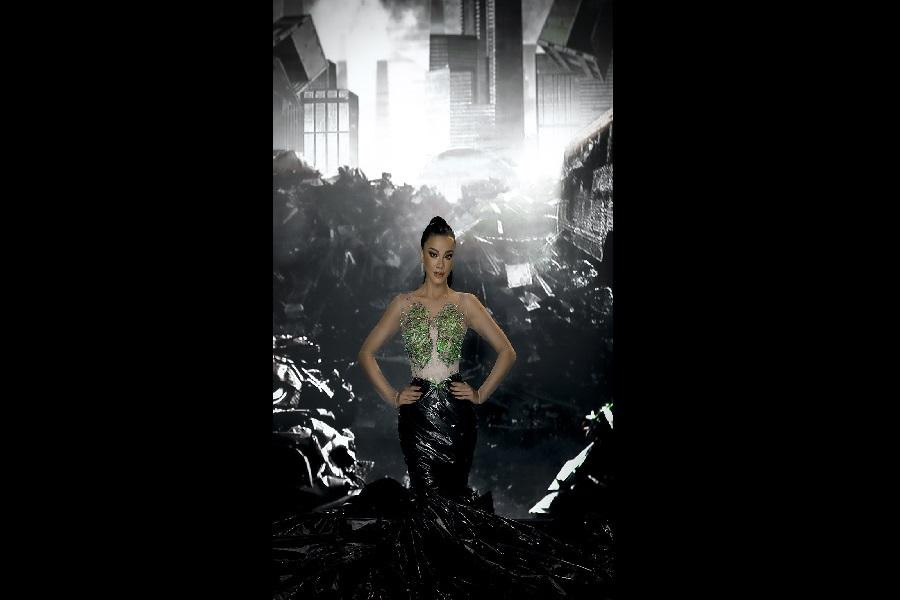 ANTD.VN - Kim Duyên đẹp “đốt mắt” người xem trong những bộ trang phục làm từ vật liệu tái chế đầy ấn tượng đến từ "nhà thiết kế phù thủy" Chung Thanh Phong. Diện những thiết kế đầy ấn tượng này, người đẹp muốn gửi tới Hoa hậu hoàn vũ 2021 thông điệp, ý nghĩa hết sức cao cả, nhân văn về vấn đề bảo vệ môi trường.