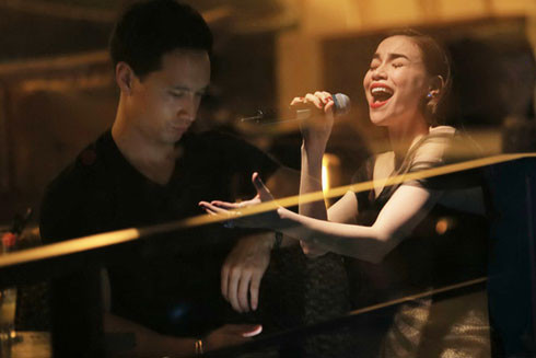 ANTD.VN - Tối 10-9, Hồ Ngọc Hà có buổi biểu diễn tại một phòng trà ở Hà Nội. Khi đêm nhạc bắt đầu, nhiều người phát hiện diễn viên Kim Lý - bạn trai tin đồn của Hà Hồ cũng ngồi âm thầm ở một góc khán phòng để xem cô biểu diễn.