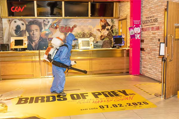 CGV tiến hành công tác xịt khuẩn vệ sinh một số cụm rạp trọng điểm.