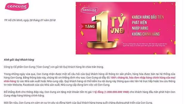 Con Cưng treo thưởng 1 tỷ đồng nếu khách hàng phát hiện doanh nghiệp nhập hàng không chính hãng
