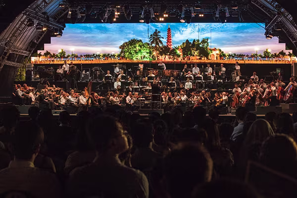 Phố đi bộ quanh hồ Gươm, khu vực trước tượng đài Lý Thái Tổ chật kín khán giả. Quốc ca Việt Nam vang lên mở đầu chương trình, người nghe thấy như được tắm trong một niềm tự hào tổ quốc. Và họ mang tâm thế khởi đầu đầy hứng khởi ấy, để theo dõi đến khi những thanh âm cuối cùng của buổi hòa nhạc rơi xuống, trong tiếng vỗ tay không ngừng nghỉ.