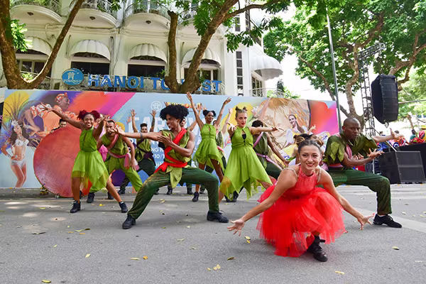 Ngày 06/10, vẫn nằm trong loạt sự kiện mừng ngày Giải phóng Thủ đô, hai suất diễn Carnival đường phố Hà Nội đã khiến phố đi bộ quanh hồ Gươm tưng bừng, rộn ràng với âm nhạc sôi động và những vũ điệu cuồng nhiệt, những màn trình diễn nghệ thuật điệu nghệ và đầy máu lửa của các nghệ sỹ châu Âu.