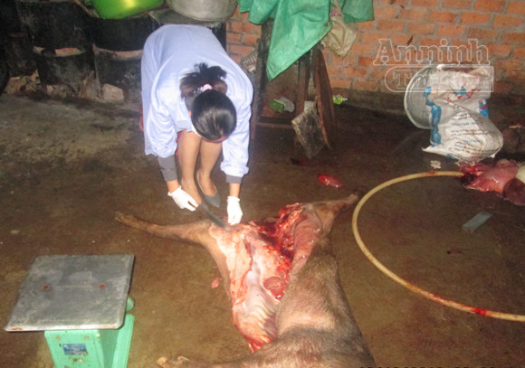 Đoàn kiểm tra đã lập biên bản bà Thời vi phạm hành vi kinh doanh giết mổ gia súc không có giấy chứng nhận đăng ký; không đảm bảo vệ sinh thú y trong giết mổ gia súc và hành vi kinh doanh sản phẩm động vật chưa được cơ quan thú y, thẩm quyền kiểm định vệ sinh thú y.