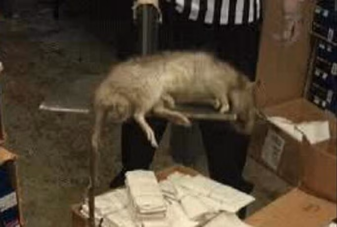 Cực kỳ hoảng hốt, một nhân viên cửa hàng dùng một cái xẻng lớn để dọn một con chuột “đột biến” cực to dài 3 ft (gần 1m) được tìm thấy trong cửa hàng. Hình ảnh này đang được lan truyền rộng rãi trên mạng Twitter cùng với rất nhiều các trang web khác.