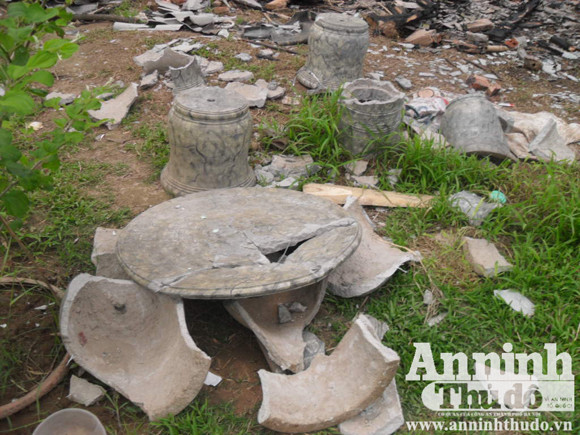 Bàn thờ của trong ngôi nhà sàn của ông Trai cũng bi các đối tượng đập phá