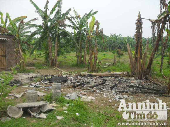 Đến trưa 20-4, nhóm của Ngọc “trọc” lại kéo đến trang trại để tiếp tục chặt phá hoa màu, tháo dỡ, lấy trộm khung kèo sắt của ngôi nhà sàn mà bọn chúng đã đốt đồng thời lấy một số tài sản và đốt thêm 1 gian lều tạm của gia đình anh Nguyễn Văn Tài.