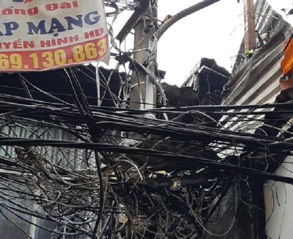 Hệ thống điện trước cửa nhà cũng bị lửa làm hư hỏng thiết bị
