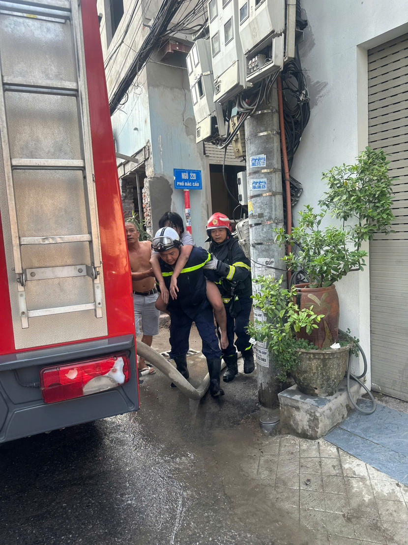 Ngay khi có mặt tại hiện trường, qua thông tin trinh sát, nhận định đám cháy xuất phát tại khu vực tầng 1 và hiện vẫn còn có người mắc kẹt trong đám cháy, Chỉ huy chữa cháy đã nhanh chóng chỉ đạo CBCS mang theo thiết bị bảo hộ cá nhân, bình thở phối hợp với lực lượng Công an phường Bồ Đề và quần chúng nhân dân để khai thác các vị trí tiếp cận, di chuyển lên các tầng phía trên tìm kiếm, cứu nạn cứu hộ người còn mắc kẹt trong đám cháy. Cùng với đó, Chỉ huy chữa cháy cũng nhanh chóng chỉ đạo triển khai đội hình chữa cháy để ngăn cháy lan lên các tầng phía trên của ngôi nhà.